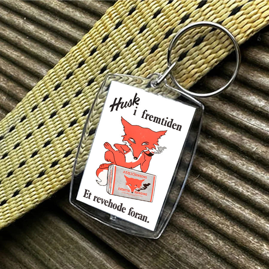 Asbjørnsens "Et revehode foran" nøkkelring - 1 stk er forhåndsbestilt, og sendes så snart dette ankommer lageret.